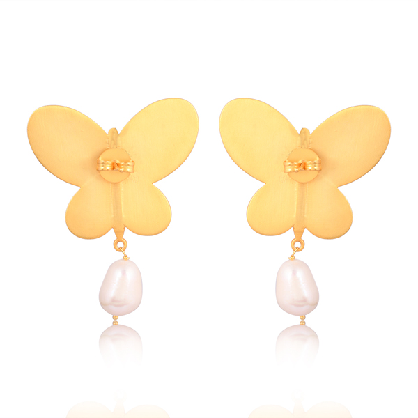 The Artita Gallery Brass Beauty Earrings in Gold from our Classique 2024 Collection. A gold plated statement earrings featuring fresh water cultured pearl and butterfly detail.